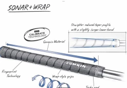 A larger lower hand geometry simulating four extra layers of tape in the lower hand encourages even grip pressure.
